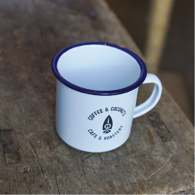 White mug with the C&C logo -